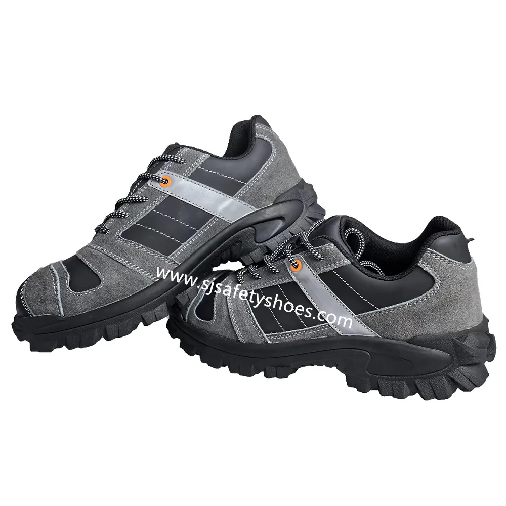 Grey Anti Slip Rubber Sole Genuine Leather Low Cut Shoe Steel Toe Safety Shoes Workmans Work Boots